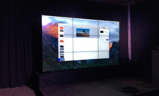 Deze prachtige foto – toegestuurd door een huurklant – toont onze 3x3 videowall in vol ornaat. De videowall wordt opgebouwd a.d.h.v. 9 x 55” schermen met een superdunne rand. Om de videowall op te bouwen wordt er gebruik gemaakt van smar...