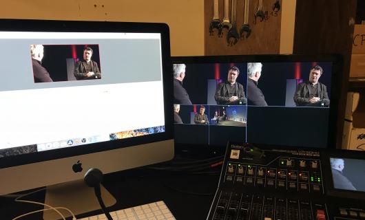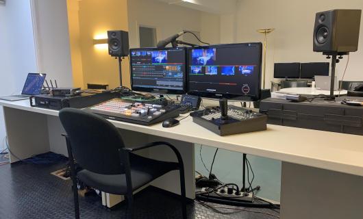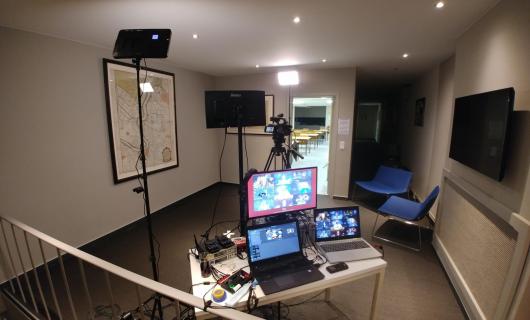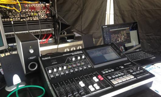 Deze foto kregen we toegezonden van een huurklant en toont onze Roland VR-50HD in werking op een regietafel. Wij voorzagen ook de cameraatjes (canon xa25). De klant voorzag zelf afkijkmonitor alsook een recordingdevice (type pixed). ...