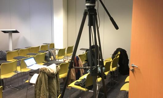 Deze foto kregen we uit het veld (door een huurklant) toegezonden, met volgende begeleidende tekst (wij kunnen het zelf niet beter verwoorden): "Case: een lunch-debat capteren. Client vroeg 1 statisch wide-shot. Ik zorgde voor de aud...