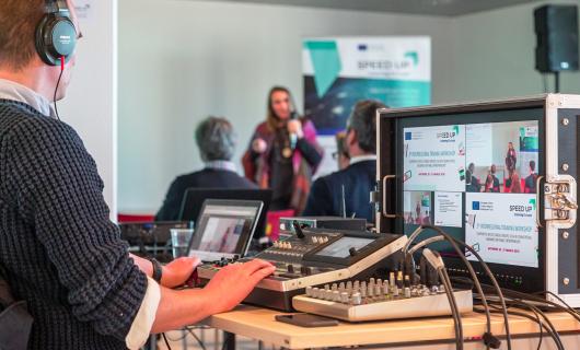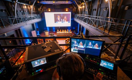 Naar wij begrepen gebruikte de huurder het platform hopin om het event / congress online te brengen. Er werden uiteindelijk simultaan 4 livestreams uitgestuurd. (1 primaire feed + 3x getolkte feeds) De 50HD stuurde 2 hdmi feeds uit 1...
