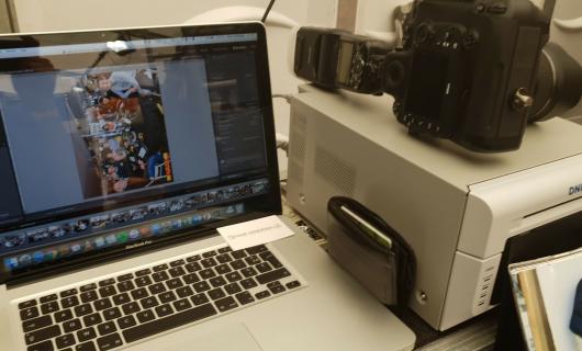 Deze foto's (toegestuurd door huurklant) tonen onze fotoprinter ergens backstage opgesteld. De fotoprinter werd klaarblijkelijk ingezet voor "instant foto printing". Dank voor de foto's!