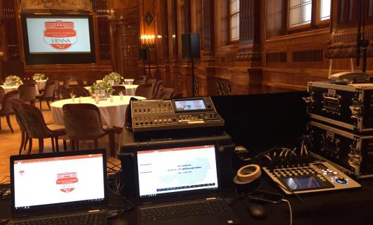 Deze foto kregen we binnen van een huurklant. Reeds 7 jaar na elkaar huur deze in januari bij ons een middelgrote materiaallijst. De regiedesk die U ziet op de foto werd in 4 andere congreszalen identiek opgesteld. Er werd gewerkt ...