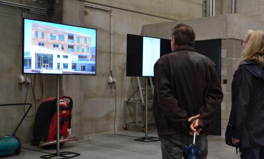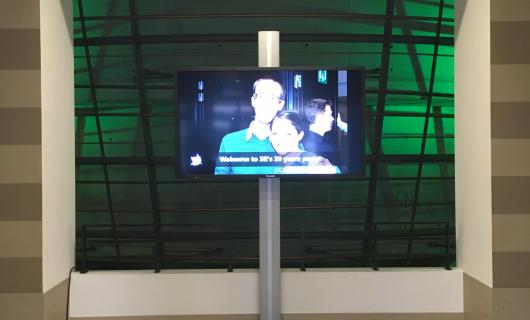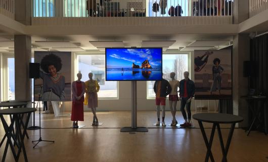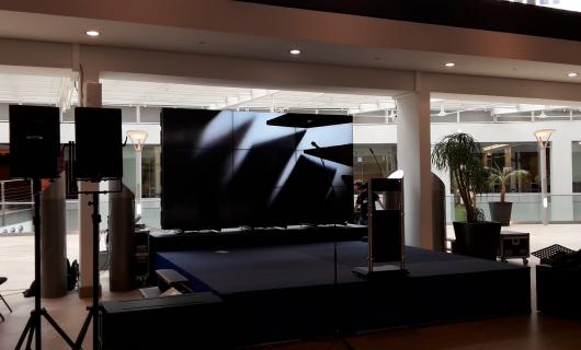 Deze foto's kregen wij aangeleverd van een huurklant. Op de foto's kan je zien hoe twee 80" large format displays op vloerstandaard goed tot hun recht komen en goed zichtbaar zijn, ook al betreft het een lichtrijke omgeving. De klant d...