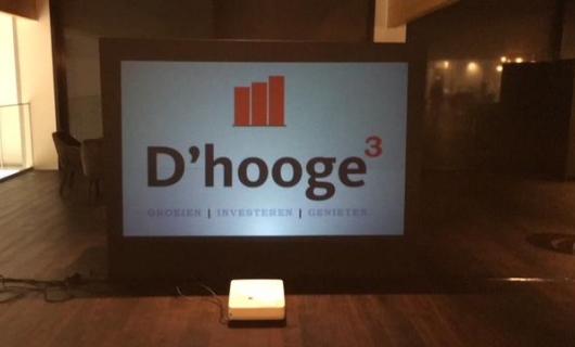 In deze case koos de huurklant ervoor om projectietechnologie te combineren met flatscreen technologie. De projectiesetup werd centraal in het midden geplaatst met aan weerszijden 2x 65" flatscreen op inox voet. De huurklant hield de...