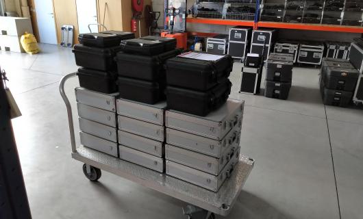Ons materiaal vindt ook haar weg naar professionele broadcast-omgevingen. Op de foto kan je onze Pelicase zien die we standaard gebruiken als transportkoffer voor onze RP120 remote controllers (deze is uitgerust met een custom made foa...