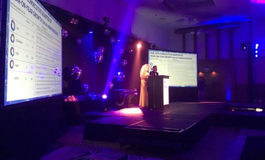 Wederom een foto die we aangeleverd kregen uit het veld, met op de achtergrond onze 3X3 videowall bestaande uit 9 x 55" flatscreens met een super dunne rand. Het scherm werd opgebouwd op podiumelementen en vandaar a.d.h.v smartmetals ren...