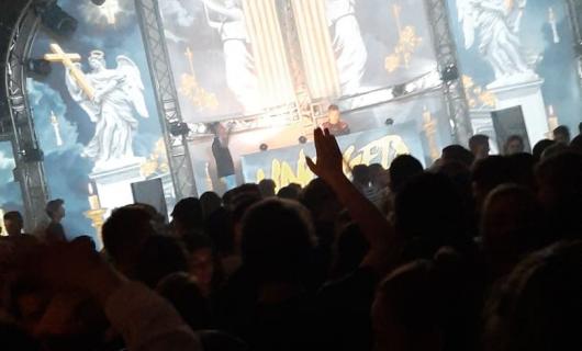 Deze foto's kregen we aangeleverd van een huurklant. De video-aansturing deed de huurklant volledig zelf met eigen materiaal (een eigen wirecast set voor multicamera en play-out videofiles). De projectiesetup werd gerealiseerd a.d.h....