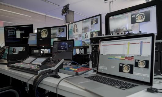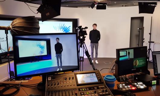 Deze huurder had goed begrepen dat als er weinig plaatd is op de productielocatie er best kan gewerkt worden met grote beeldschermen op vloerstandaard (deze hebben maar een beperkt grondvlak nodig in tegenstelling tot projectiesetups). ...
