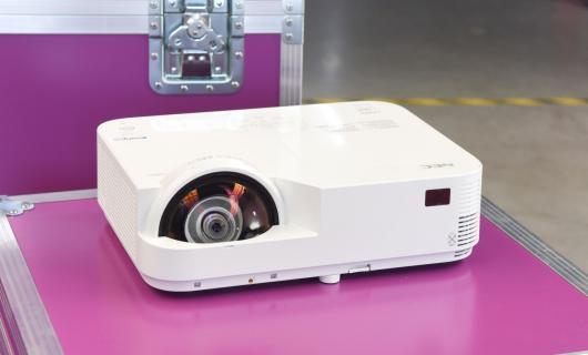 In deze case was er maar een zeer beperkte afstand beschikbaar tussen projectiescherm en projector. Daarom werd er gekozen om te werken met de ET-D75LE90 ultra short throw lens, zo kon er gewerkt worden binnen een afstand van ca. 2m. ...
