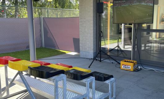 Sommige Belgen blijven niet bij de pakken zitten en maken van de nood een deugd. Wij voorzagen enkel het 55" scherm met speaker, maar deze inspirerende foto's tonen aan dat waar een wil een weg is! Seo Tags: huur scherm EK 2021, scher...