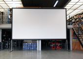 Bij het projectiescherm werden specifieke grotere / stabielere poten voorzien (type AT64) zodat de onderzijde van het geprojecteerde beeld hoger kon uitkomen.