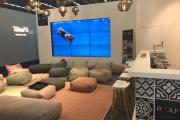 Eerst werd de videowall opgebouwd (op 4 podiumelementen van 1x1m op 60cm hoogte). Daarna kwam de wand ervoor (met een juiste uitsnede zodat de videowall mooi zichtbaar wordt).
