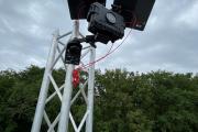 Uit de foto kunnen ook wij (als verhuurder) veel leren. Om de Camdo-housing te monteren wordt er gewerkt met vierkantige truss (vermoedelijk opgesteld op base plate) en de housing wordt vast gemaakt met spanbandje/ tiewraps.