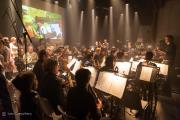 A.d.h.v. Playmobil-materiaal werd een een bepaald verhaal in beeld gebracht (synchroon lopend met het orkest).