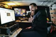 De huurder kwam last minute nog op het idee om een soort eigen OB-van te maken door een regiedesk/tafel (op maat gemaakt) in een bestelwagen te monteren.