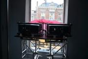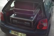 Een tweede grappige foto toont aan dat we in deze case tot het gaatje zijn gegaan om het materiaal meegeleverd te krijgen met onze huurklant (niet voor alle dagen). Om de 2x ptdz13k projectoren in een Volkswagen Polo te krijgen moesten we de pt dz13k projectoren eerst in een kleinere flightcase steken nl. die van de ptrz970 is (die licht kleiner is maar waar het universele lang ag rental frame ook in past). Vervolgens moesten we de FC's (flightcases) ontdoen van de wielen en moesten we de tweede FC ontdoen van het deksel (dat evident wel nog apart werd meegegeven).