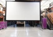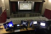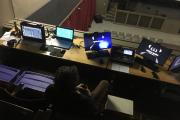 De videomix-output werd tegelijk op het grote projectiescherm vertoond alsook live gestreamed (voor de livestream te encoder voorzagen wij geen materiaal).