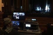 Inzake camera 's werd er gewerkt met canon xa25 (die standaard hd sdi output hebben) en voor de projectie werd er met short throw business projectortjes gewerkt (dit kon omdat het een avondvoorstelling betrof en vrij donker was in de kerk). Deze projectortjes werden tevens voorzien van sdi to hdmi converters.
