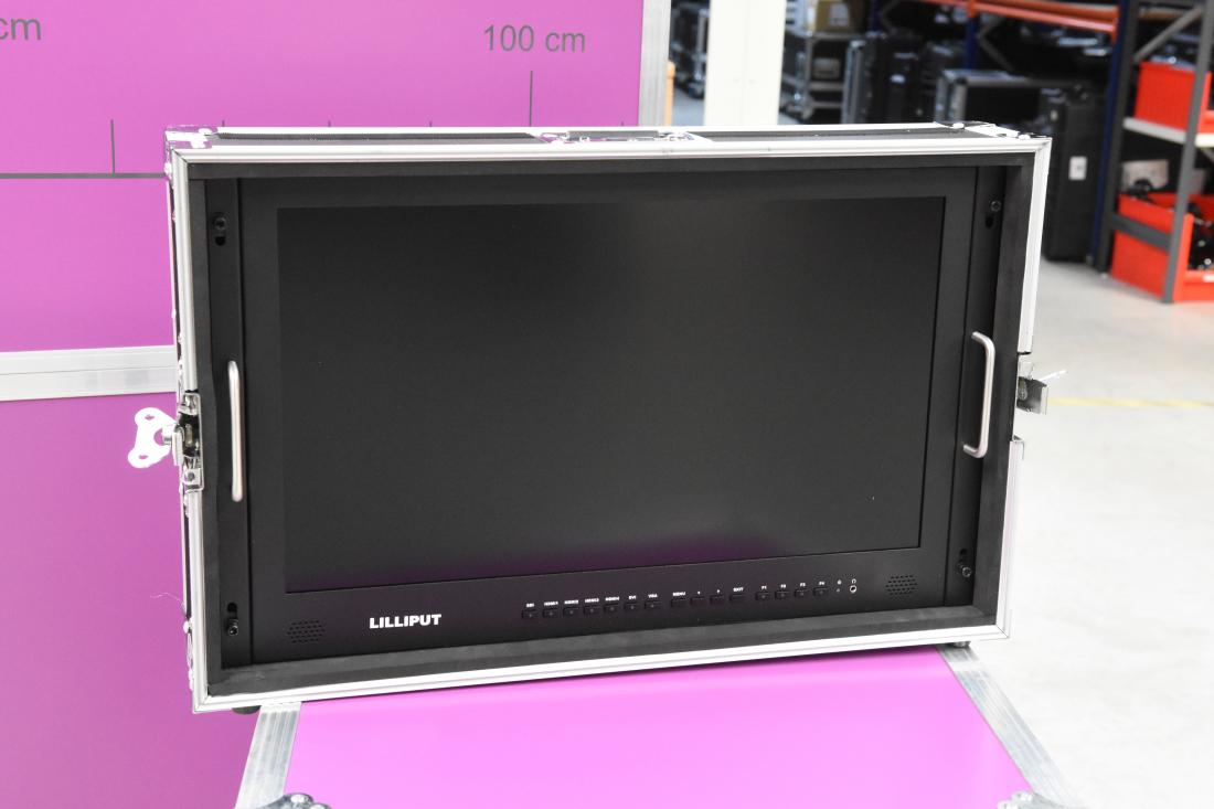 Voor een vlotte installatie zit de monitor ingebouwd in een flightcase. Voeding kan voorzien worden via vaste spanning, of via optionele V-mount batterijen.