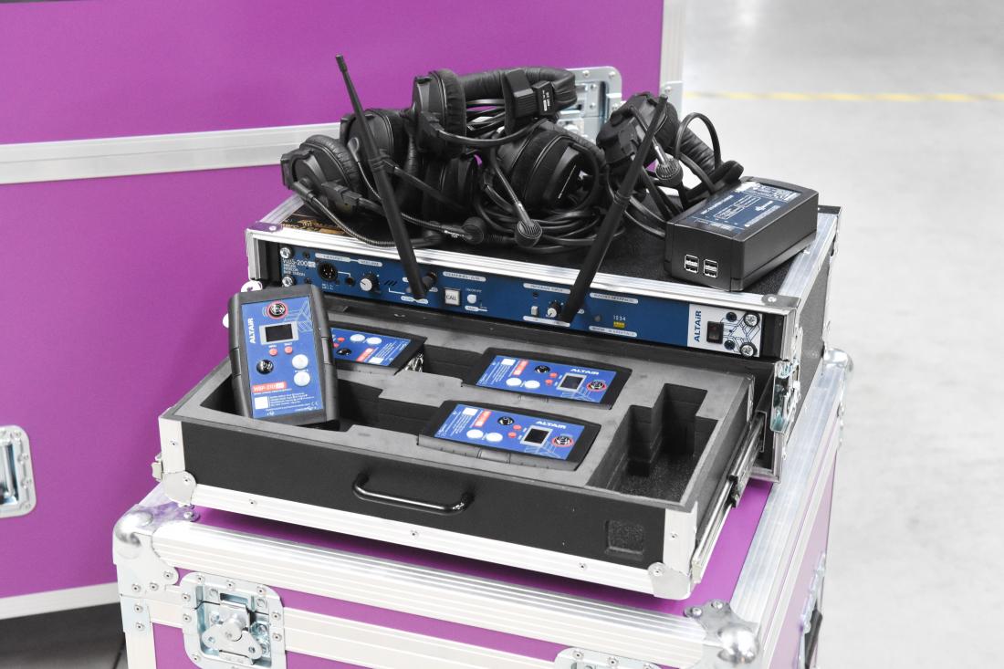 Draadloze intercom set, bestaande uit een base station en 4 beltpacks. (5 gebruikers in totaal).