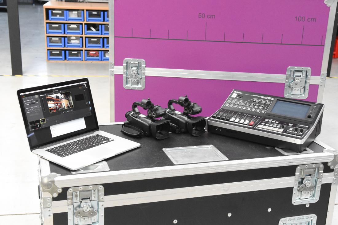 De set kan nog worden uitgebreid met extra camera's en/of micro's.