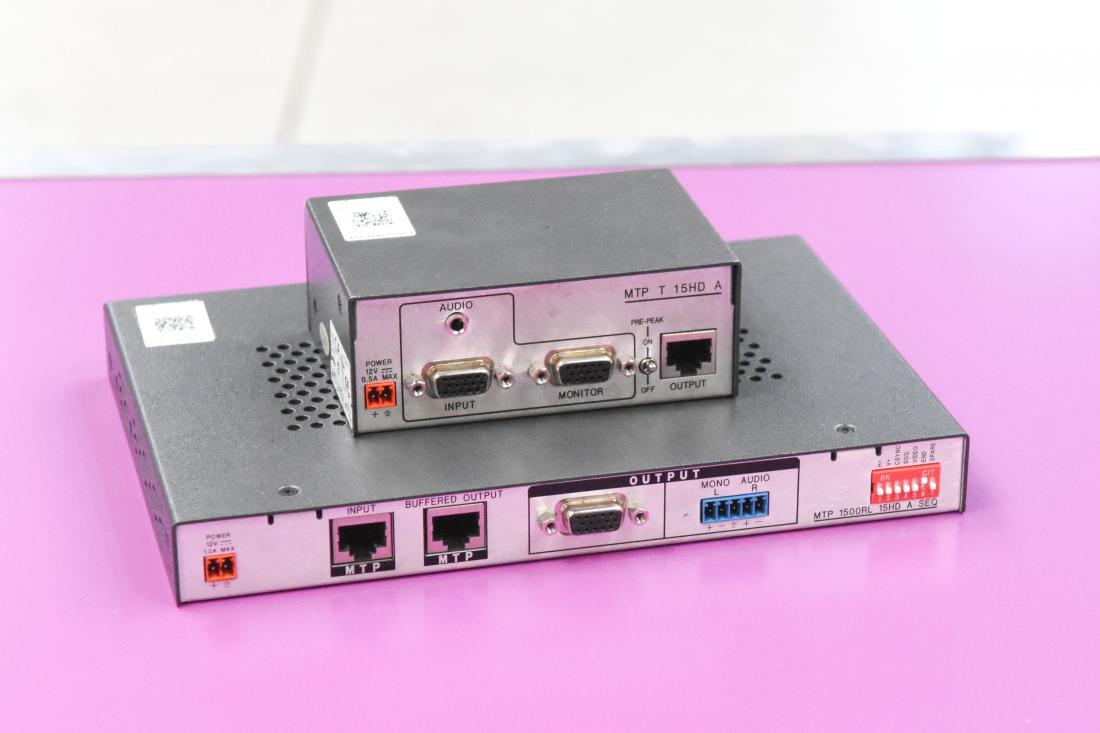 Deze set bestaat uit: transmitter (extron 15HD) en receiver (extron1500RL). Hiermee kan u vlot video en audio maximum 450m verder brengen, zonder kwaliteitsverlies !