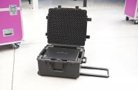 De projector wordt standaard uitgeleverd in een Pelicase met daarbij de afstandsbediening en een nestroomkabel (type eurosnoer).