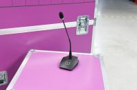 Deze draadloze tafelmicrofoon komt (zoals de naam het aangeeft) goed van pas wanneer de sprekers gezeten zijn aan een tafel (bv. in een panelgesprek met meerdere deelnemers die aan een tafel zitten, en dit voor een groot publiek).