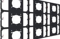 - Videowall kan vlot opgebouwd worden op een vlakke ondergrond of podiumelementen (60cm, 80cm, 100cm hoogte kunnen we voorzien). Wandmontage of inhangen in truss wordt in de praktijk minder gedaan.